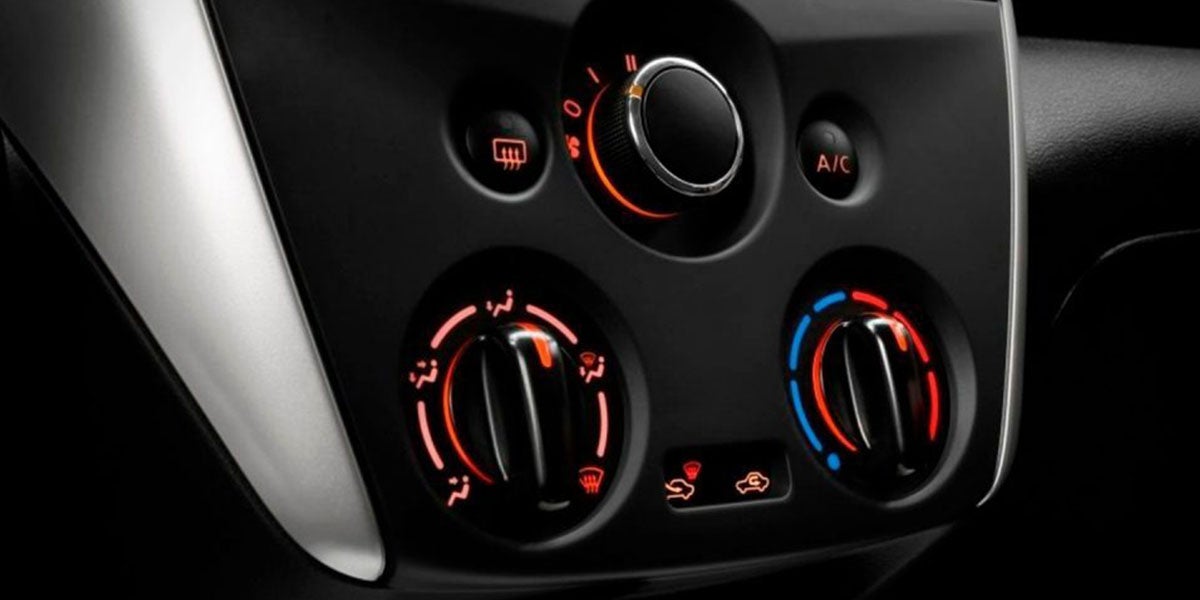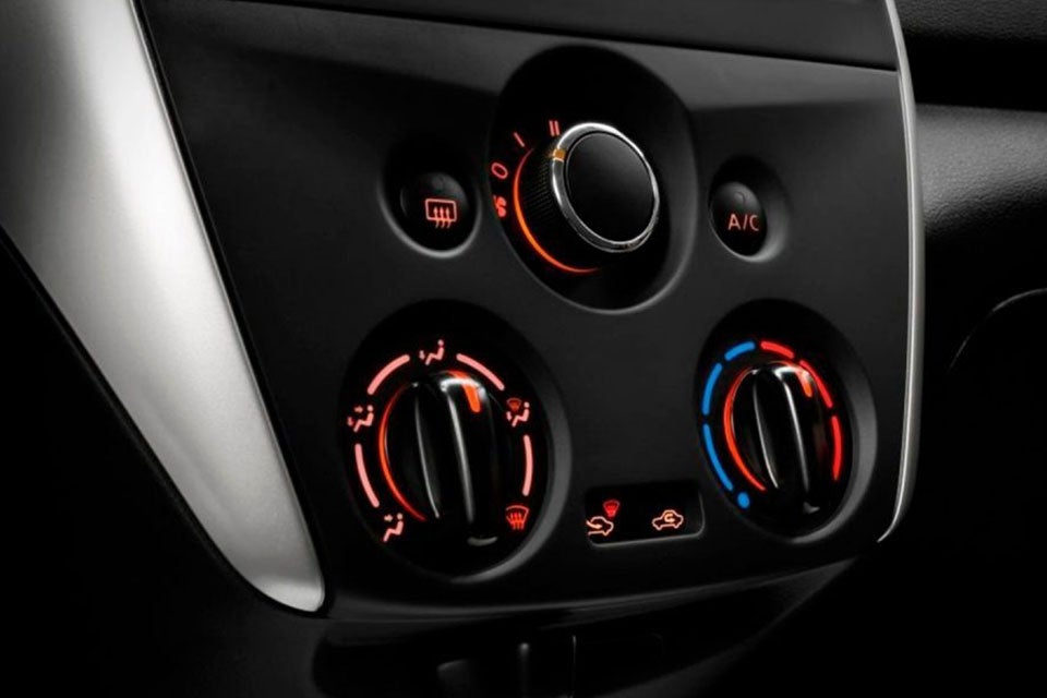 El aire acondicionado con ajuste manual* te permite disfrutar tus trayectos, aún cuando la temperatura exterior sea elevada. Más kilómetros con más confort, es algo que obtienes con Nissan V-Drive.
